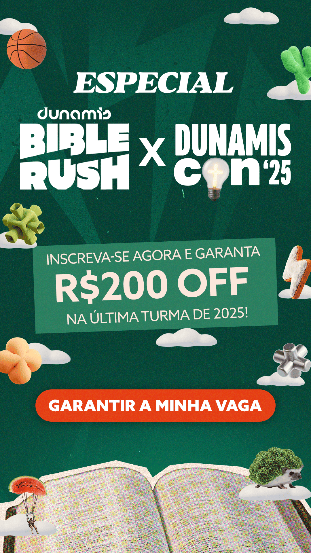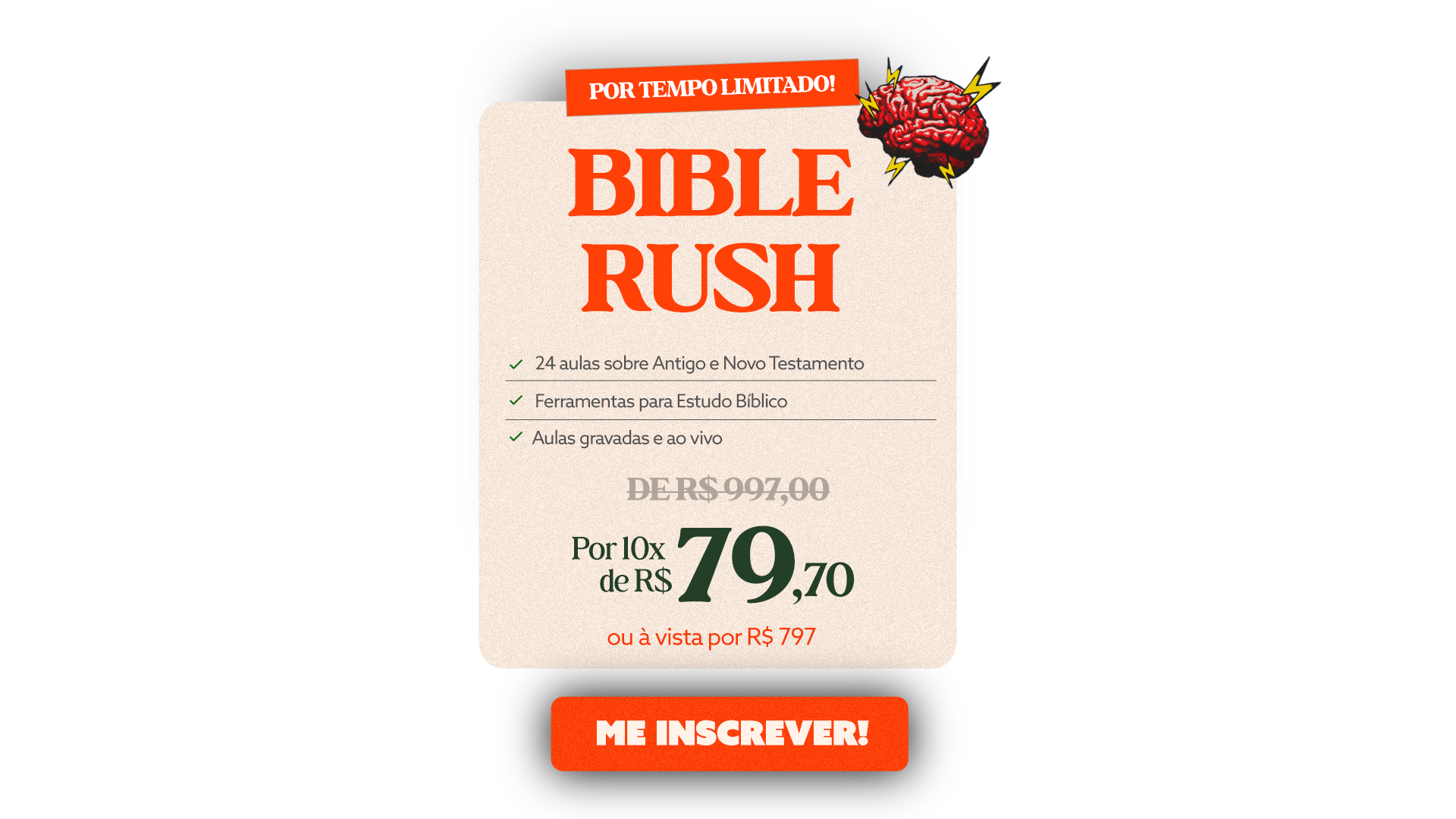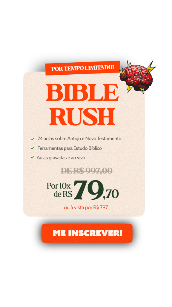 O Dunamis Bible Rush oferece uma experiência completa e interativa de estudo bíblico, com acesso a uma plataforma com conteúdos semanais e materiais complementares. As aulas ao vivo promovem engajamento direto com professores, permitindo aplicar o método indutivo para um estudo profundo e independente das Escrituras. Ao longo dos seis meses, além de ler toda a Bíblia, você desenvolverá habilidades, fortalecerá sua caminhada espiritual e estabelecerá uma rotina sólida de estudo que impactará sua vida para sempre.